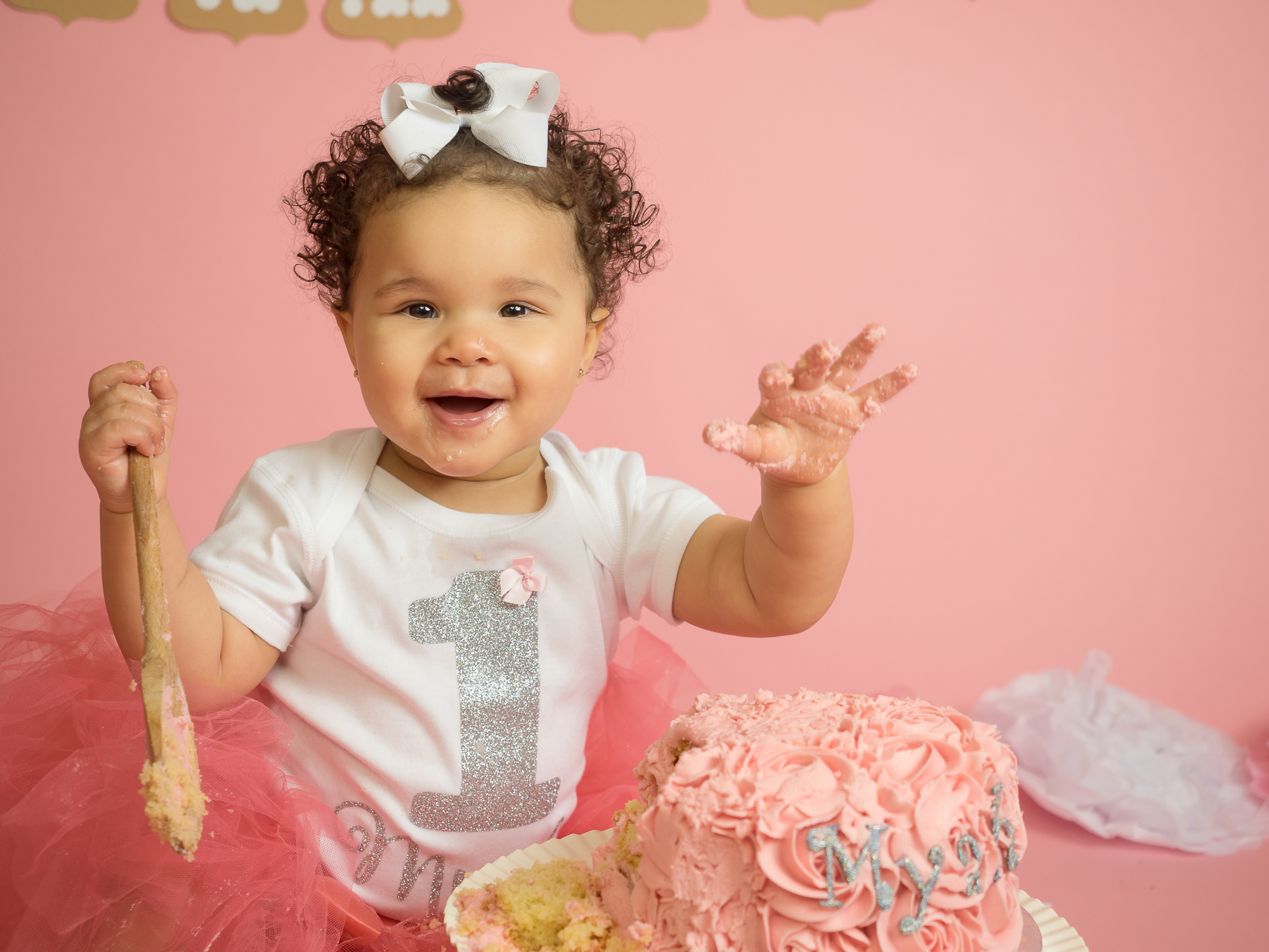 Today I meet this beautiful little lady again after photographing her newborn session last year, to celebrate her 1st Birthday with a cake smash session.